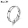 Besiko Simple 4mm Simple 18K Gold S925 Silver Plain Stainless Steel Couple Rings For Women Men Fashion Ring Jewelry Wholesale