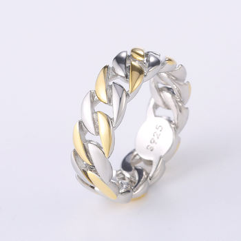 Caratium 5/7mm Thick Chunky Chain Ring Cuban Curb Link Gold Color Filled Silver Stylish Ring for Everyone