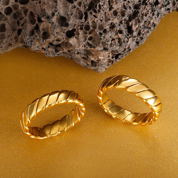 Caratium Croissant Braided Twisted Chunky Dome Ring Stacking Star Band For Women and Men Statement Wedding Ring