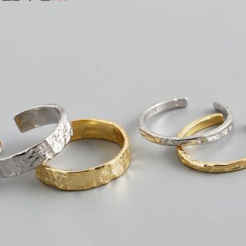 Caratium 925 Sterling Silver Unique Irregular Minimalist Open Ring Women Men European Hammered Hip Hop Couples Jewelry Accessories